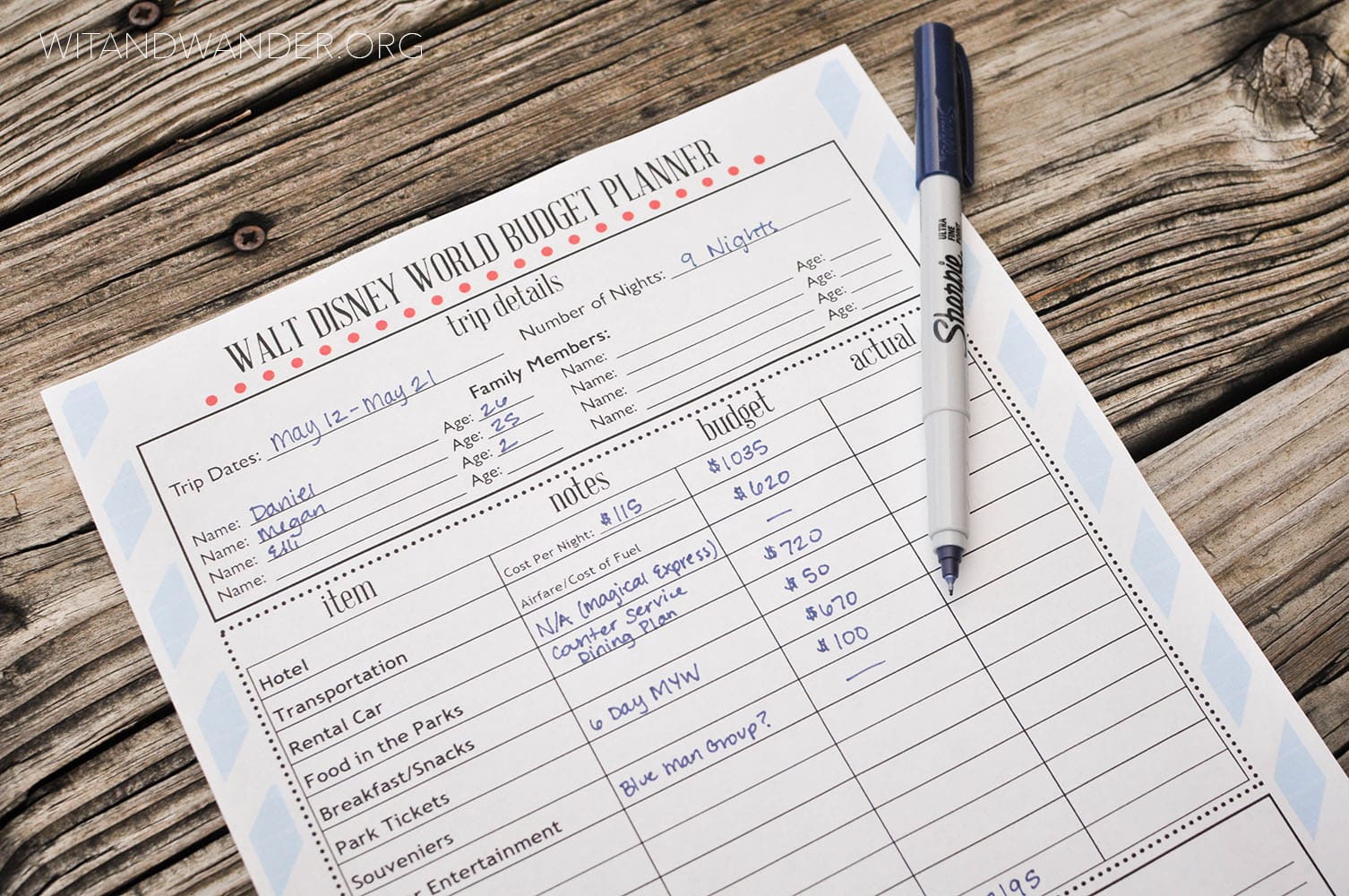 Want to keep track of your budget for a vacation? Get this free Walt Disney Budget Planner from Our Hand Crafted Life. It is perfect to plan your Disney vacation budget.