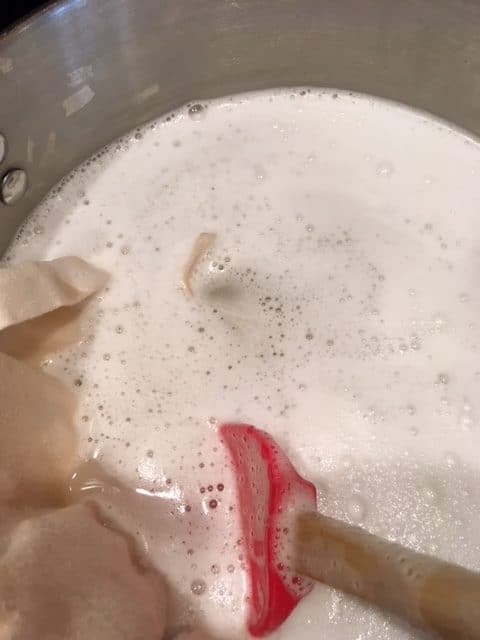 Note: You want to make sure the water is very hot so it can fully dissolve all of the soap. I heated mine up on the stove to make sure it was hot enough.