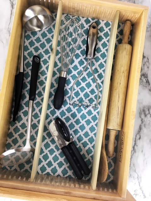 My drawer looks much better after making this DIY kitchen drawer organizer. It may sound crazy but it makes me happy every time I open the drawer. Plus, I can easily find everything. I love having a well-organized drawer.