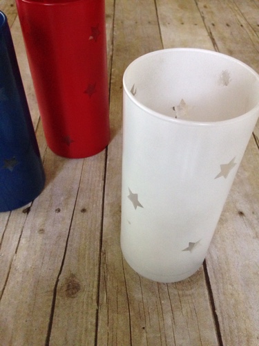 Now you can peel off the stickers. Put some candles in them and you are ready for the 4th. I used citronella candles to help keep the bugs away.