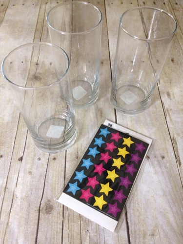 I started with 3 candle holders and a pack of stickers. They were only one dollar each at the dollar store. I love the dollar store!