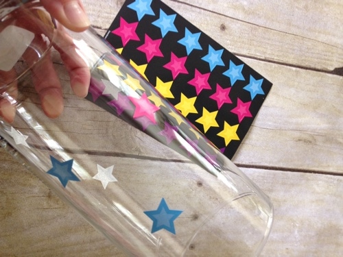 The kids or you can place the star stickers all around the candle holders. I didn't use a particular pattern, I just stuck them on.
