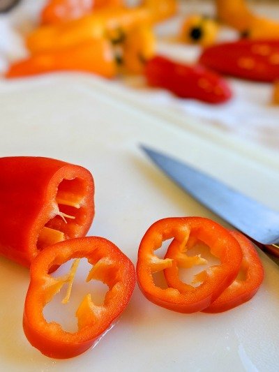 Grab your cutting board and get to work cutting the veggies. Once you are done cutting them all up store them in a container until the day you need them. Weeknight meals will be so easy to cook after cutting up your vegetables during meal prepping time!