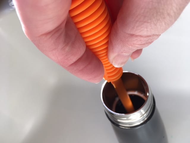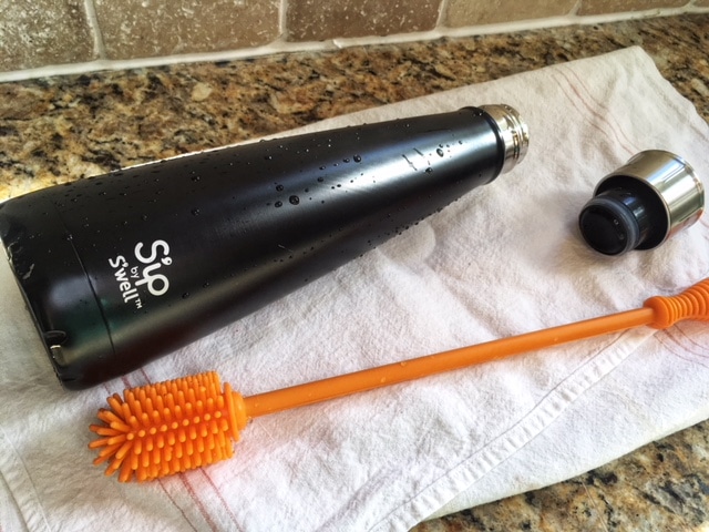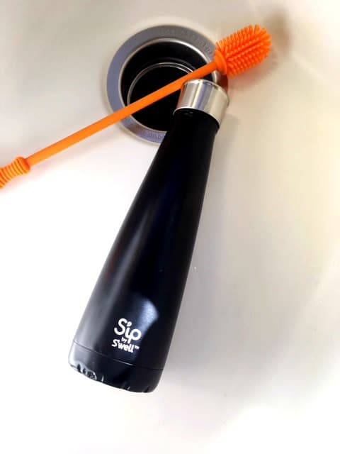 To start you will need a bottle brush. The Sip and the S'well both have narrow openings so it is harder to find a bottle brush that works well with it. I found this one on Amazon and it works great! As you can see below it fits perfectly in the bottle.