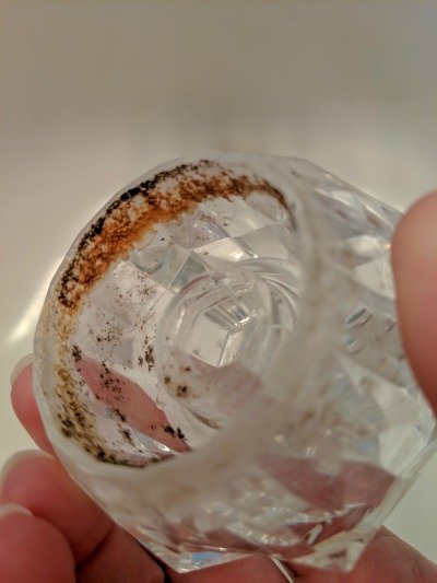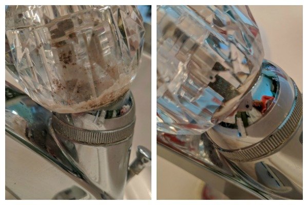 After the handle is finished soaking then take a power brush or old toothbrush (I love this power brush for cleaning) clean the inside it. All of the mold and calcium build up should just easily scrub away. Scrub the end cap too if it needs it.