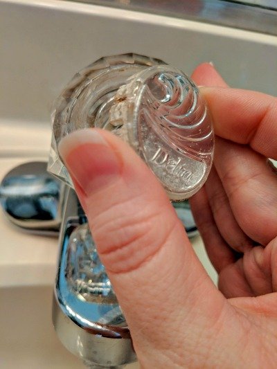In a few of our bathrooms, we still have the older faucet handle that is clear crystal. They are more difficult to keep clean.
