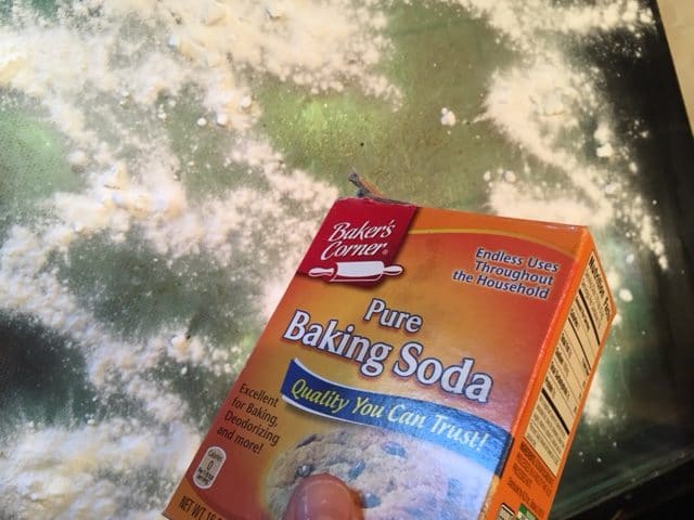 STEP 2: Sprinkle the baking soda over the glass panes, using about 1/4 cup.