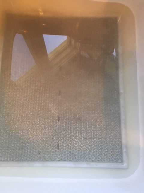 - Don't have a large enough sink where at least half of your range hood filter can soak? Take it to the bathtub instead and use enough water so that the whole thing is covered.