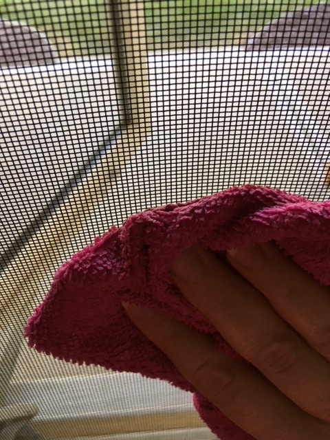 Instead, I decided to try wiping them down with a microfiber cloth. It ended up being really easy, quick, and removed all the crud. If you are trying to figure out how to clean your window screens without removing them, check out this simple tip.