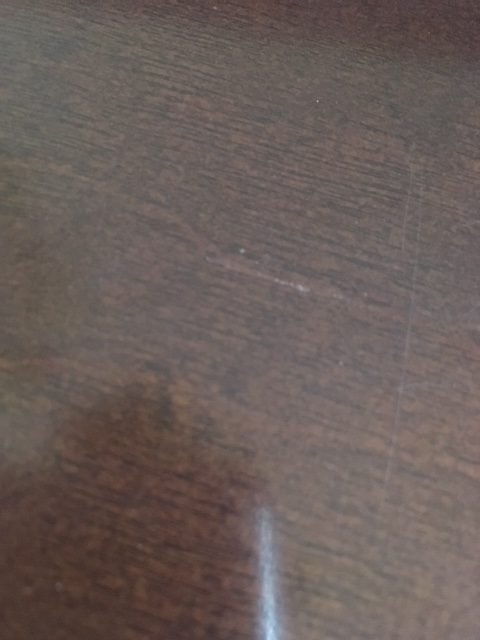 Below is a picture of some of the deep scratches on my table. You can see that the top layer and stain are completely gone.