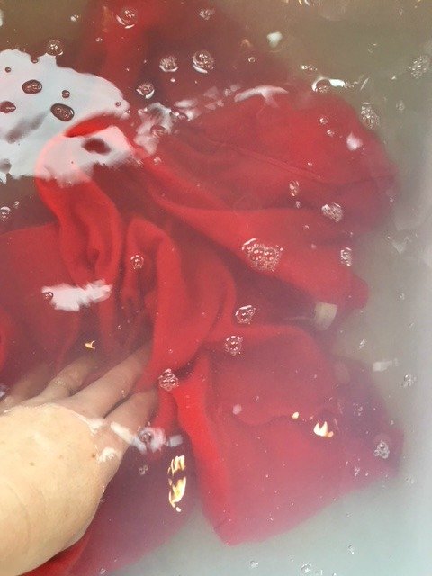 After 30 minutes remove the clothes from the water and gently wring as much water as possible.