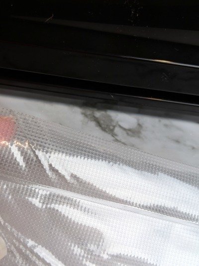 Once you have your bags cut you will want to seal the first side of the bag. Just insert it in the vacuum sealer, close the lid, and press the seal button. When it is done remove the bag and finish doing all the bags. You can see below how well it seals.